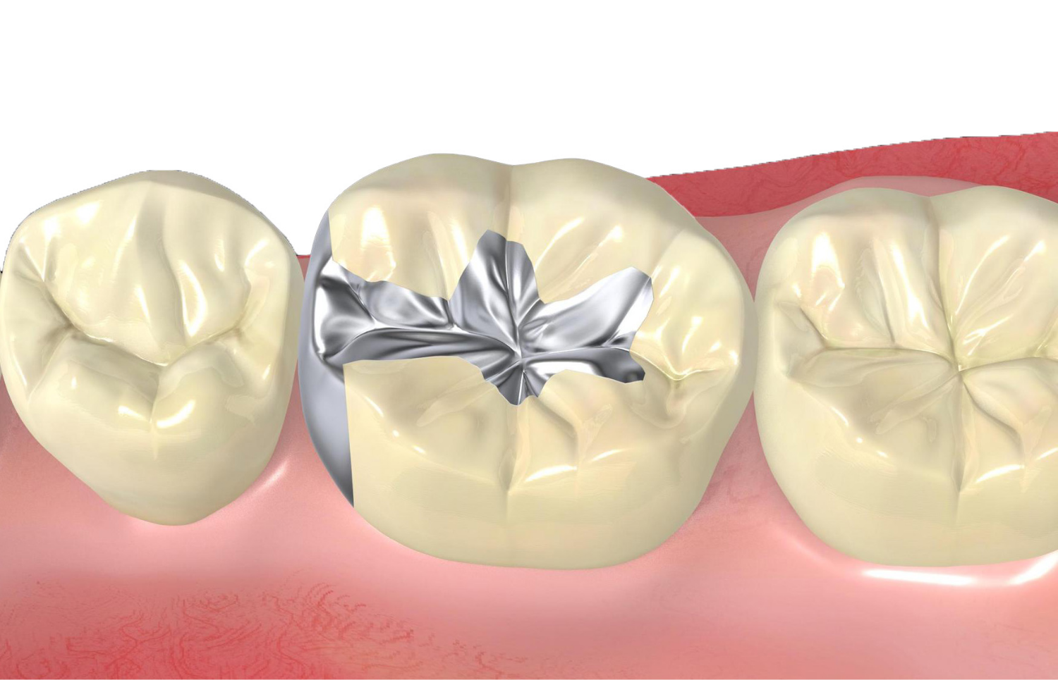 金属の詰め物の場合、熱伝導の関係で熱いものや冷たいものを食べたときに歯が“しみる”感覚を覚えることがあります。また、金属の詰め物は劣化しやすい傾向もあります。口を開けたときの歯の金属色が気になったり、以前に入れた金属の詰め物が取れてしまったりしたときなど、素材の交換を検討されてはいかがでしょうか。